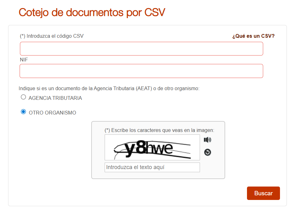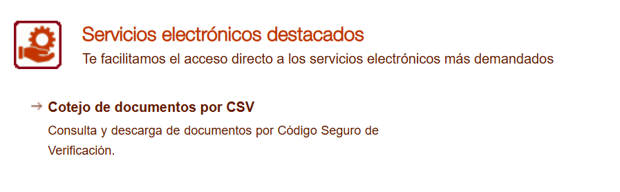 Un código seguro de verificación (CSV) es un identificador alfanumérico único que aparece en la versión imprimible de muchos documentos electrónicos emitidos por la Administración Pública y por organismos como los ministerios, la Agencia Tributaria, la Seguridad Social o el Registro Civil. Su finalidad es permitir la comprobación remota de la autenticidad y la integridad del documento. Para comprobarlo, solo hay que introducir el código en la sede electrónica.